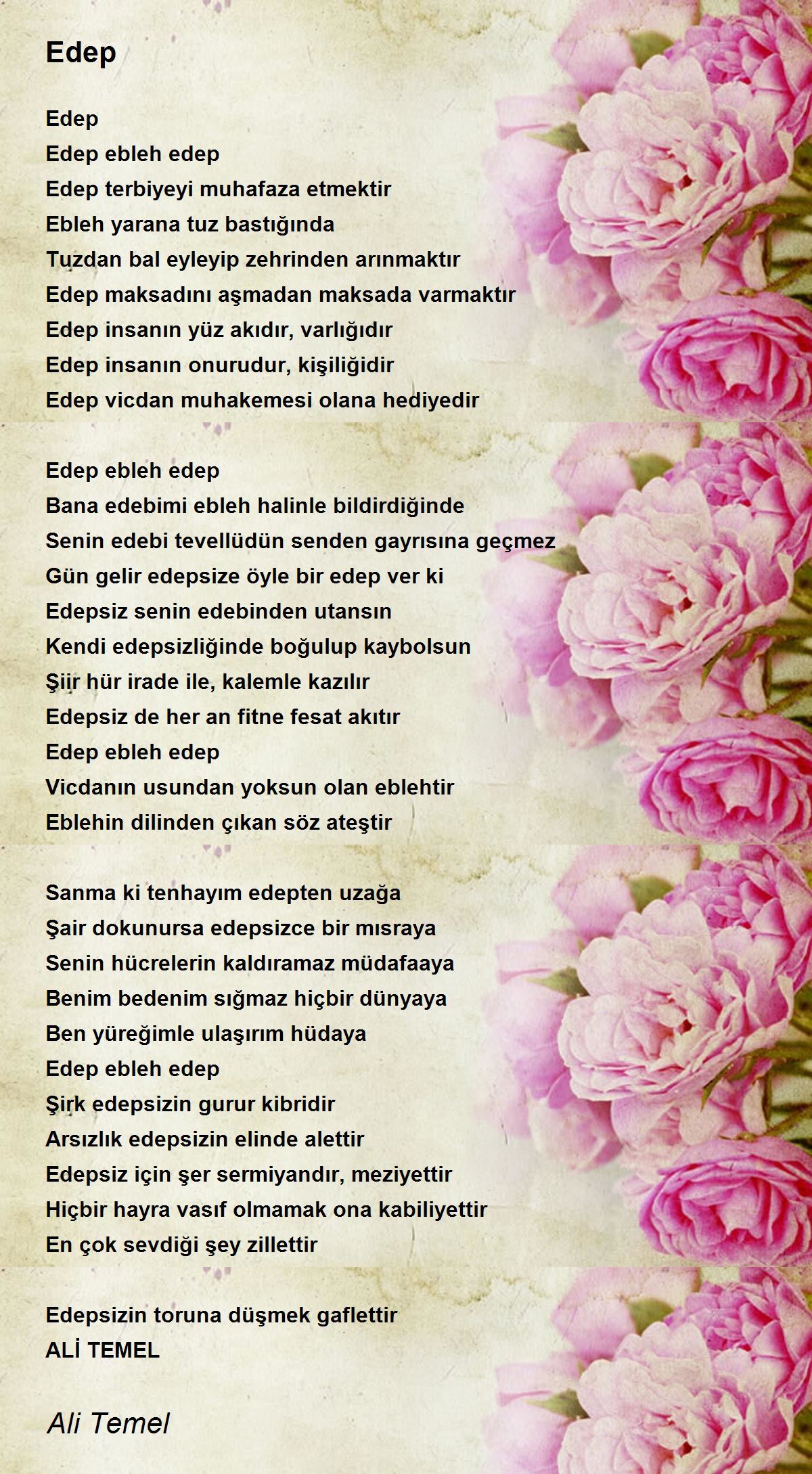 Edep insanın yüz akıdır, varlığıdır