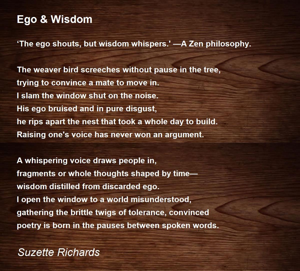 ‘The ego shouts, but wisdom whispers.' —A Zen philosophy.