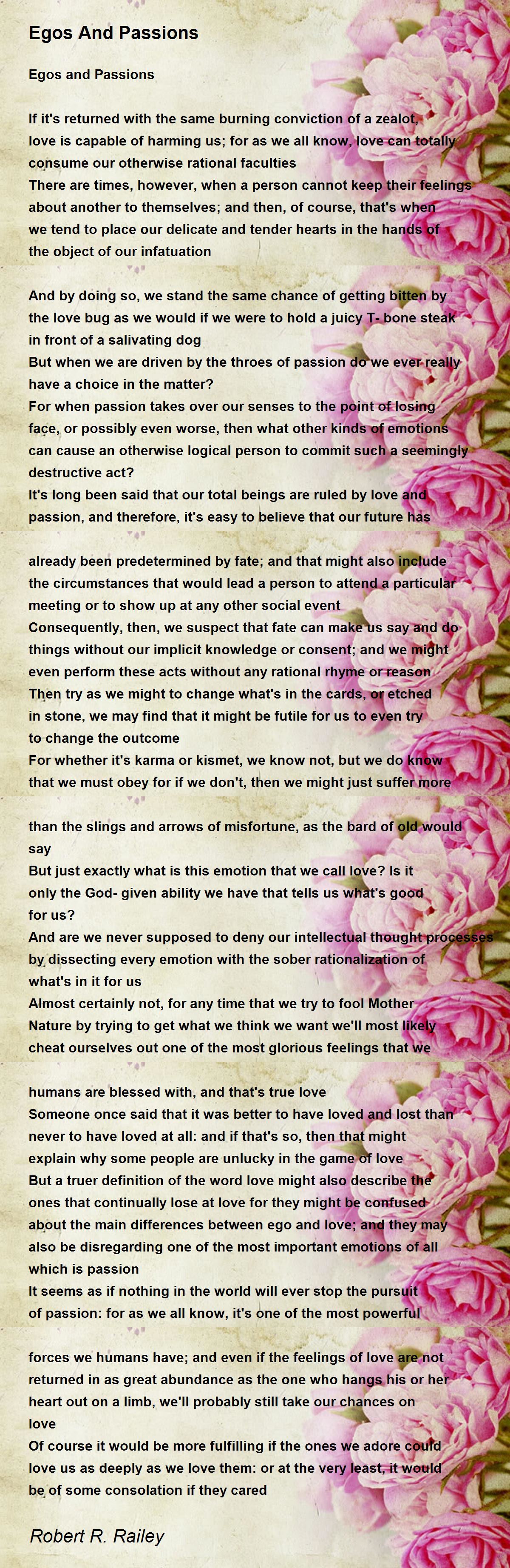 But a truer definition of the word love might also describe the ones that continually lose at love for they might be confused about the main differences between ego and love; and they may also be disregarding one of the most important emotions of all which is passion