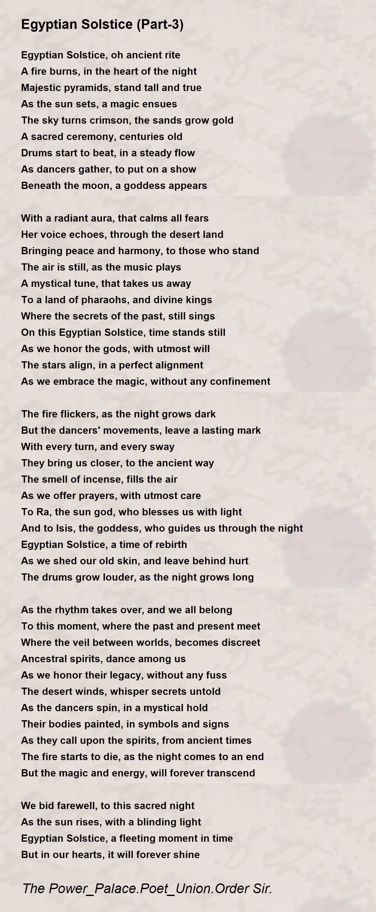 Egyptian Solstice, oh ancient rite
