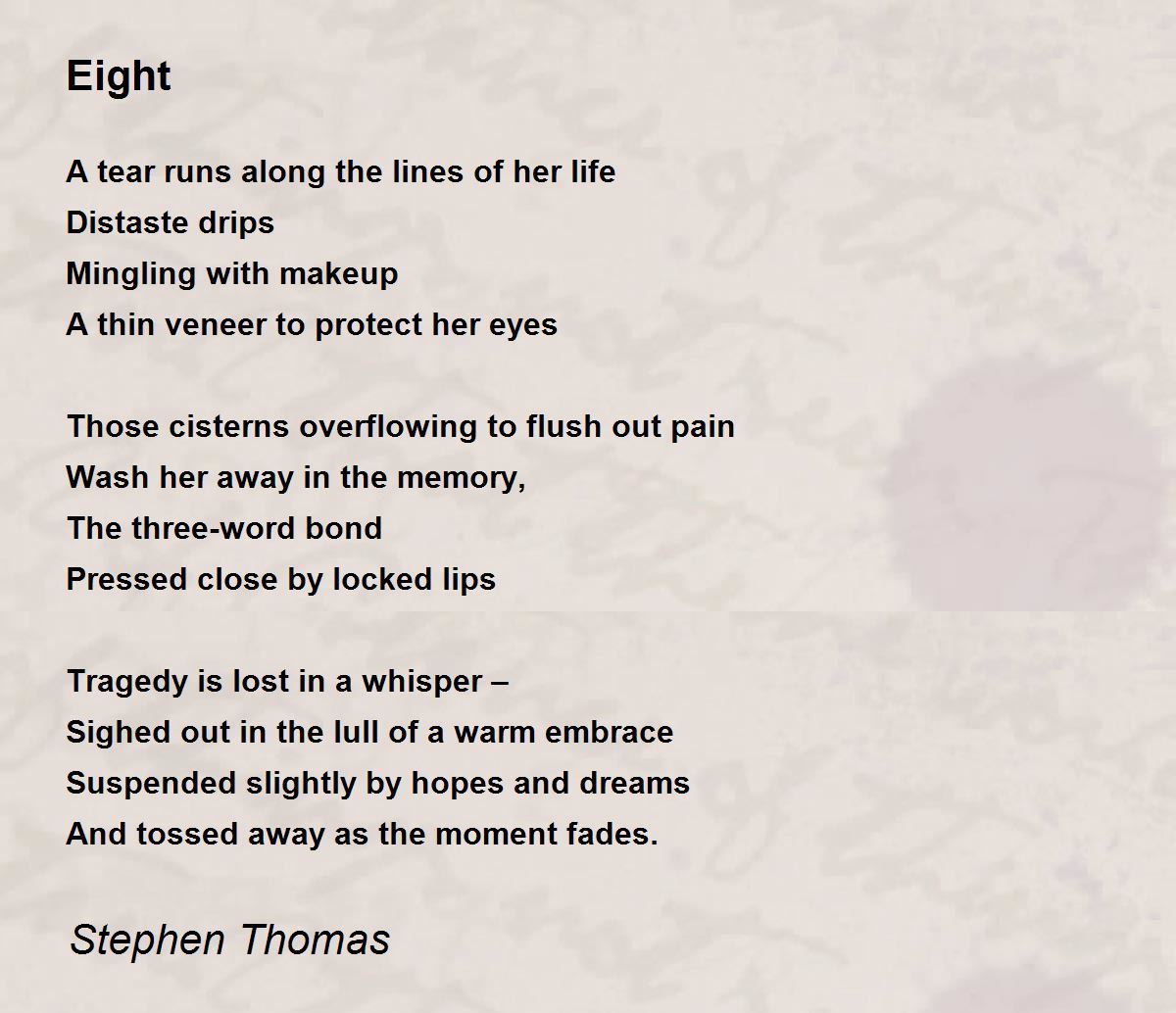 A tear runs along the lines of her life