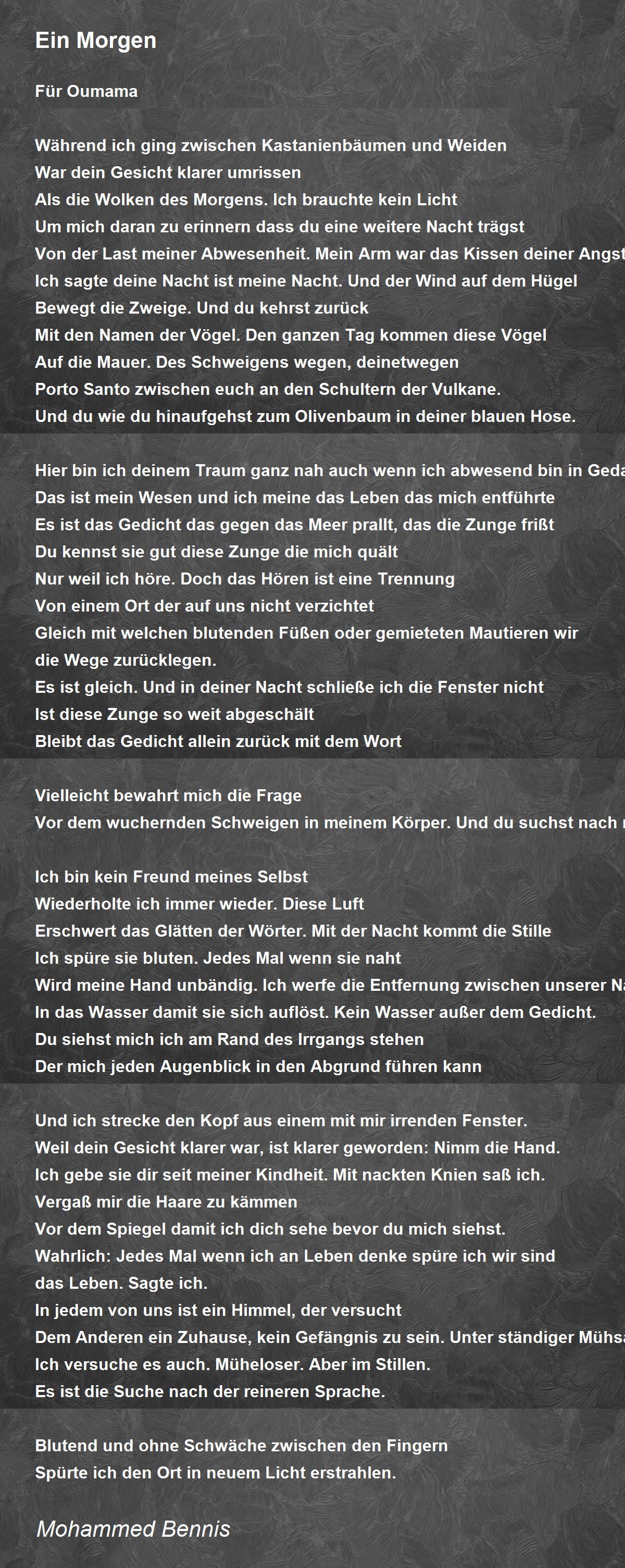 Es ist das Gedicht das gegen das Meer prallt, das die Zunge frißt