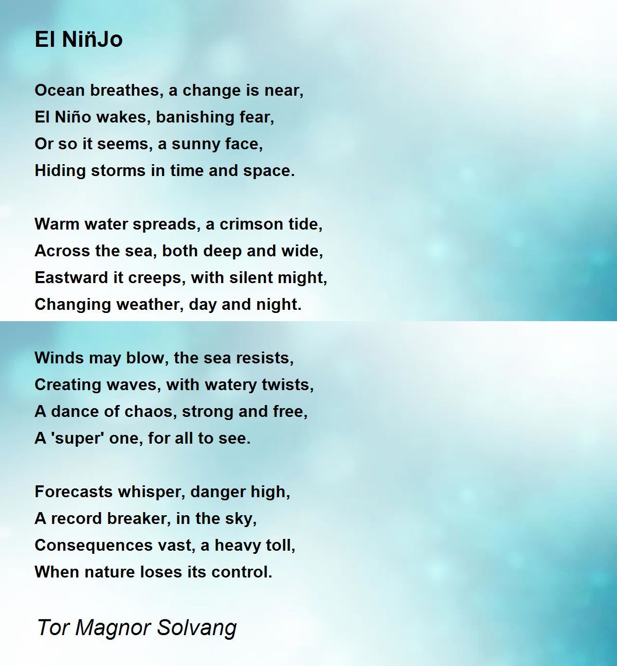 El Niño wakes, banishing fear,