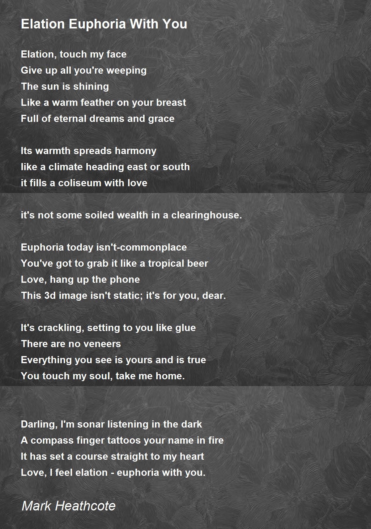 Love, I feel elation - euphoria with you.