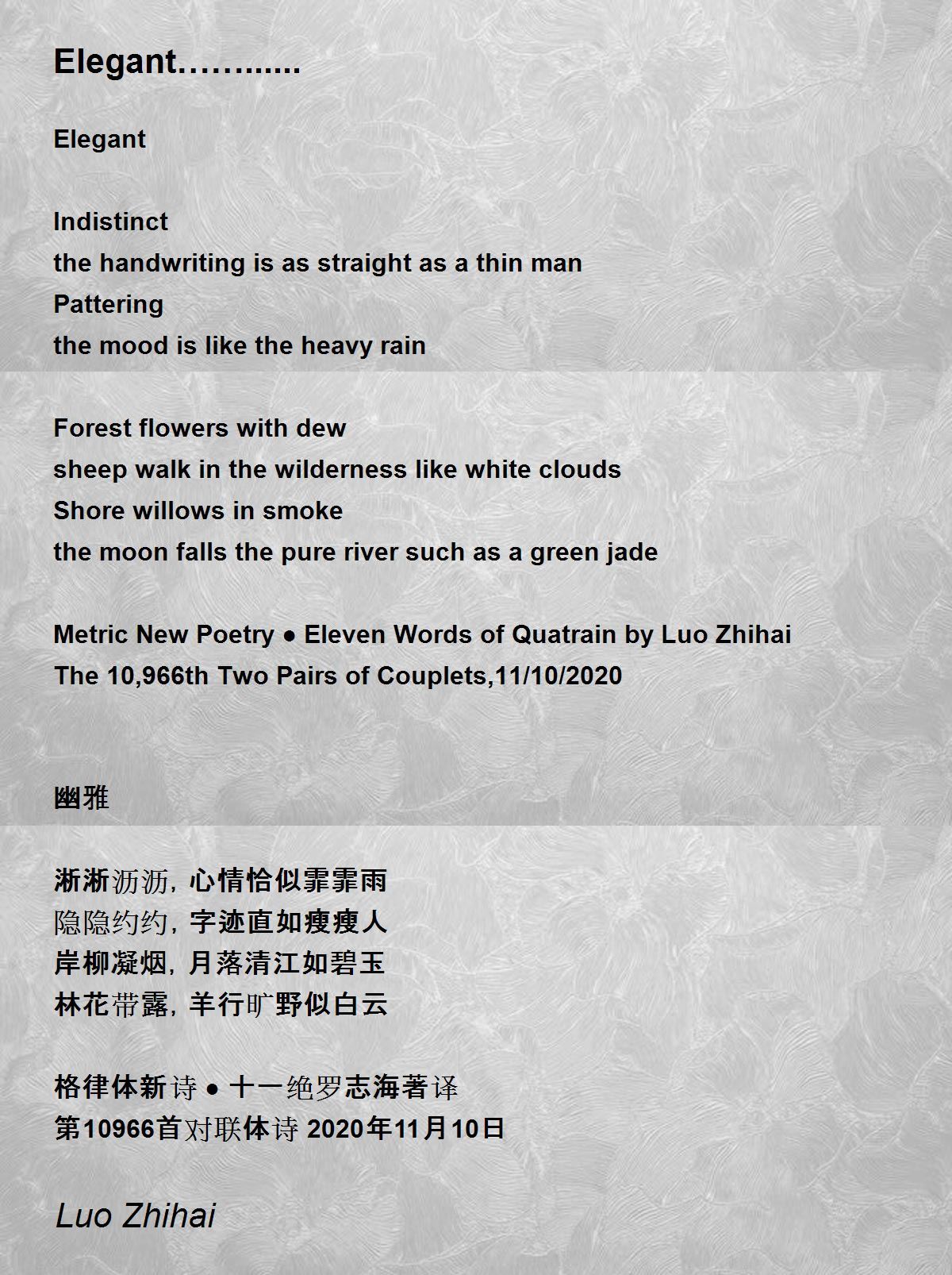 Metric New Poetry ● Eleven Words of Quatrain by Luo Zhihai