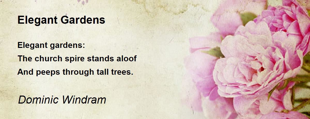 Elegant gardens: The church spire stands aloof And peeps through tall trees.