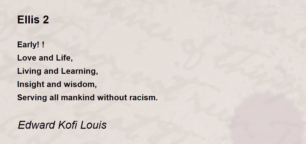 Early! ! Love and Life, Living and Learning, Insight and wisdom, Serving all mankind without racism.