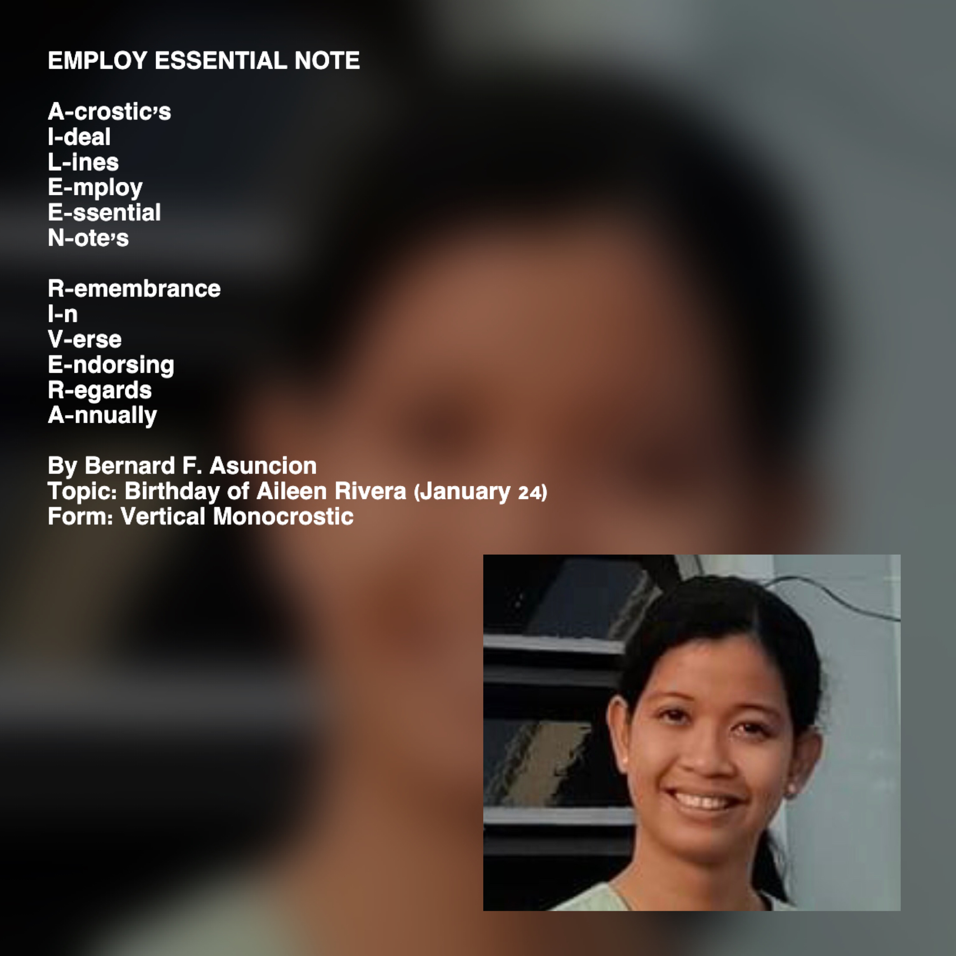 Topic: Birthday of Aileen Rivera (January 24)