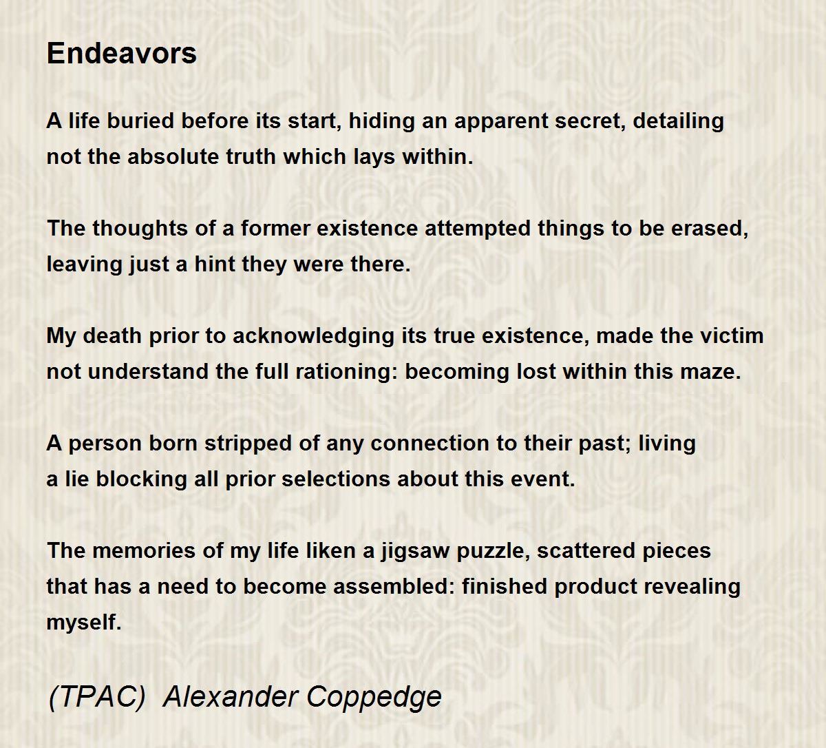 A life buried before its start, hiding an apparent secret, detailing not the absolute truth which lays within.