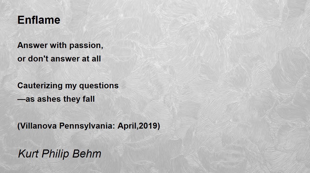 Answer with passion, or don't answer at all Cauterizing my questions —as ashes they fall (Villanova Pennsylvania: April,2019)