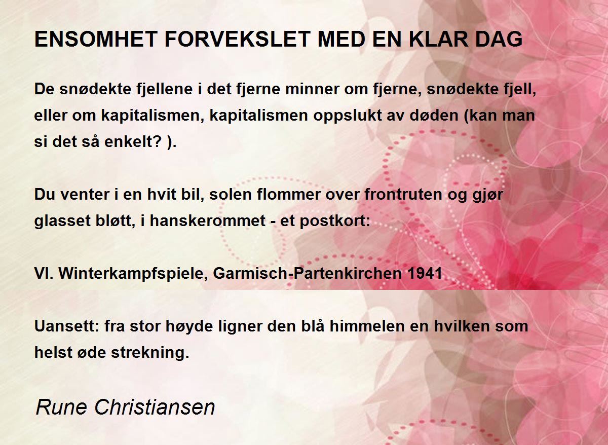 De snødekte fjellene i det fjerne minner om fjerne, snødekte fjell, eller om kapitalismen, kapitalismen oppslukt av døden (kan man si det så enkelt?).
