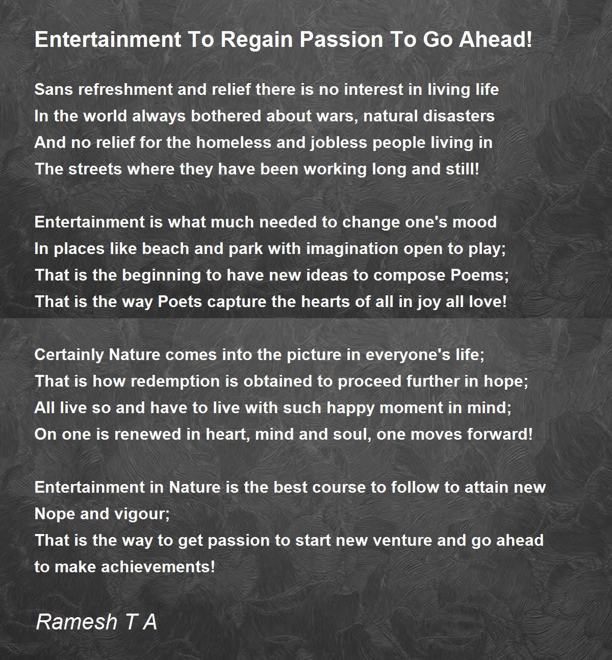 Entertainment in Nature is the best course to follow to attain new Nope and vigour; That is the way to get passion to start new venture and go ahead to make achievements!
