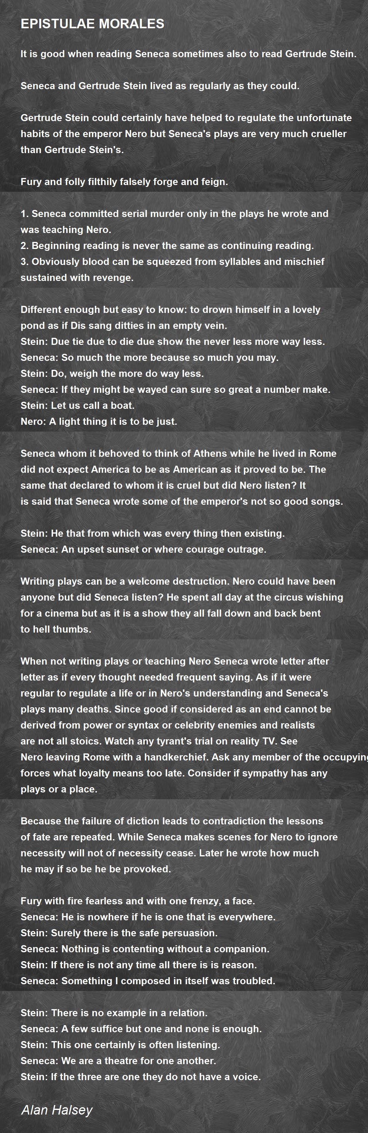 It is good when reading Seneca sometimes also to read Gertrude Stein.