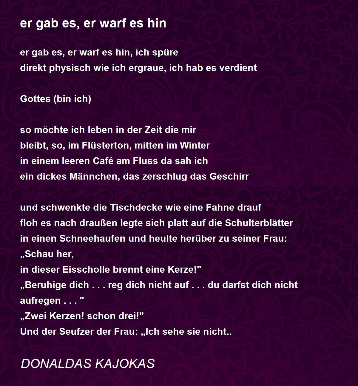 er gab es, er warf es hin, ich spüre