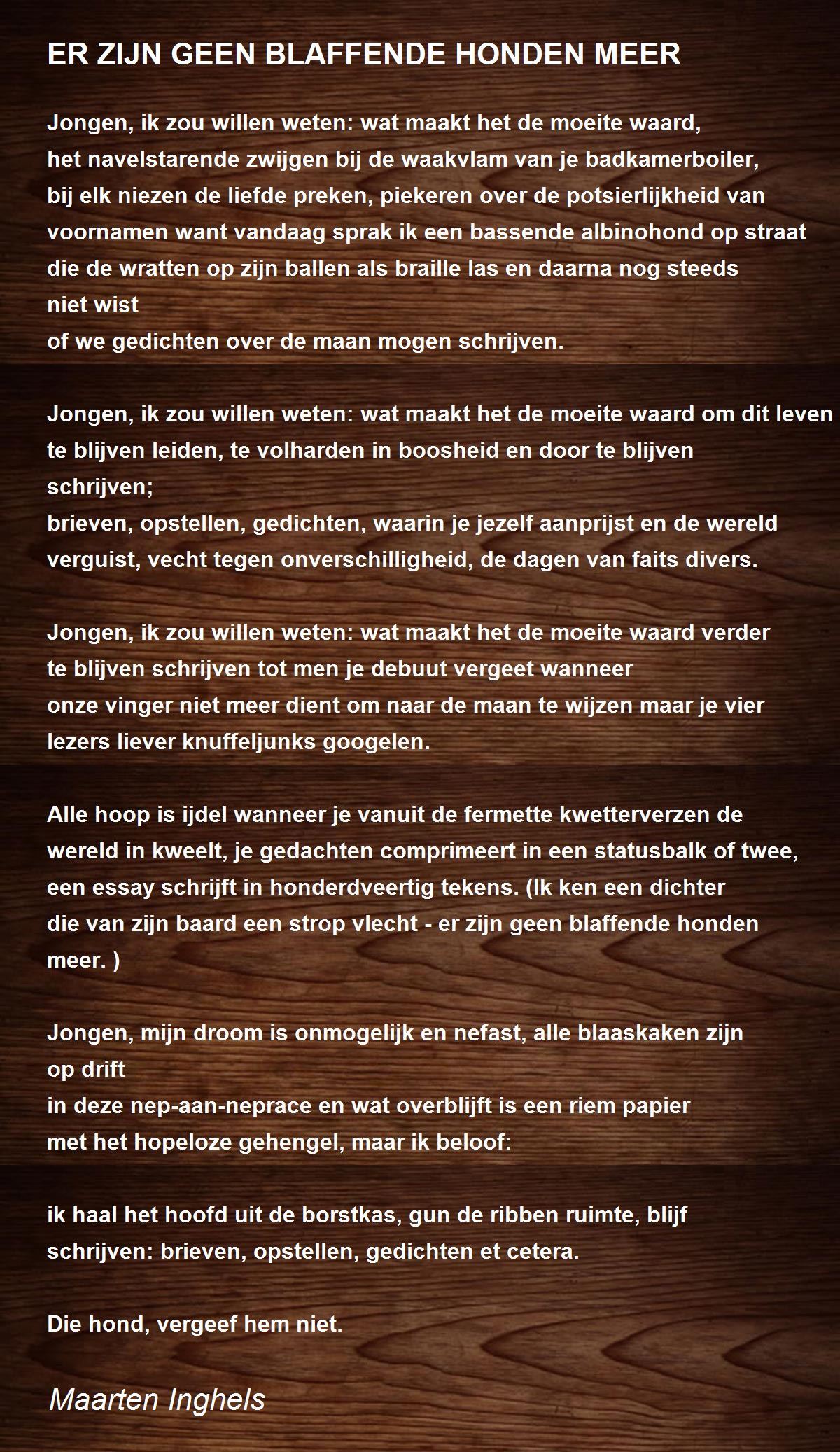 die van zijn baard een strop vlecht - er zijn geen blaffende honden meer.)