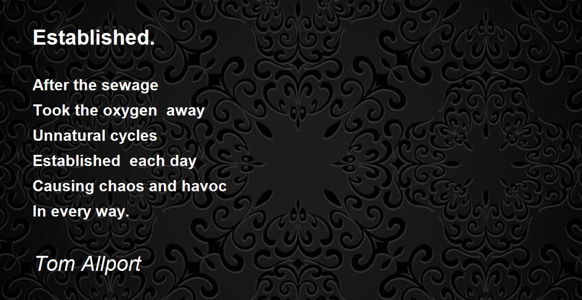 After the sewage Took the oxygen away Unnatural cycles Established each day Causing chaos and havoc In every way.