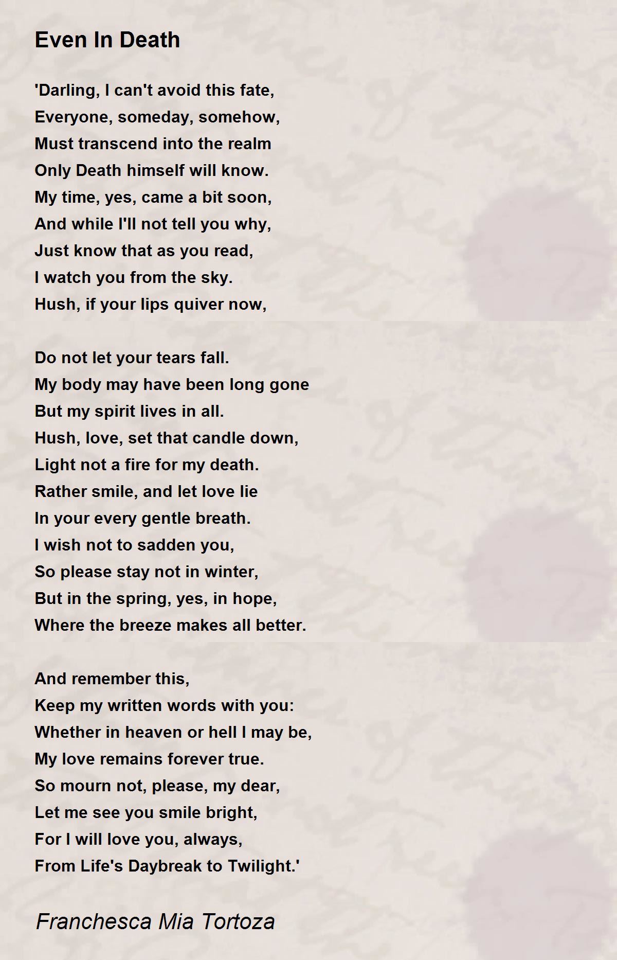 So mourn not, please, my dear,