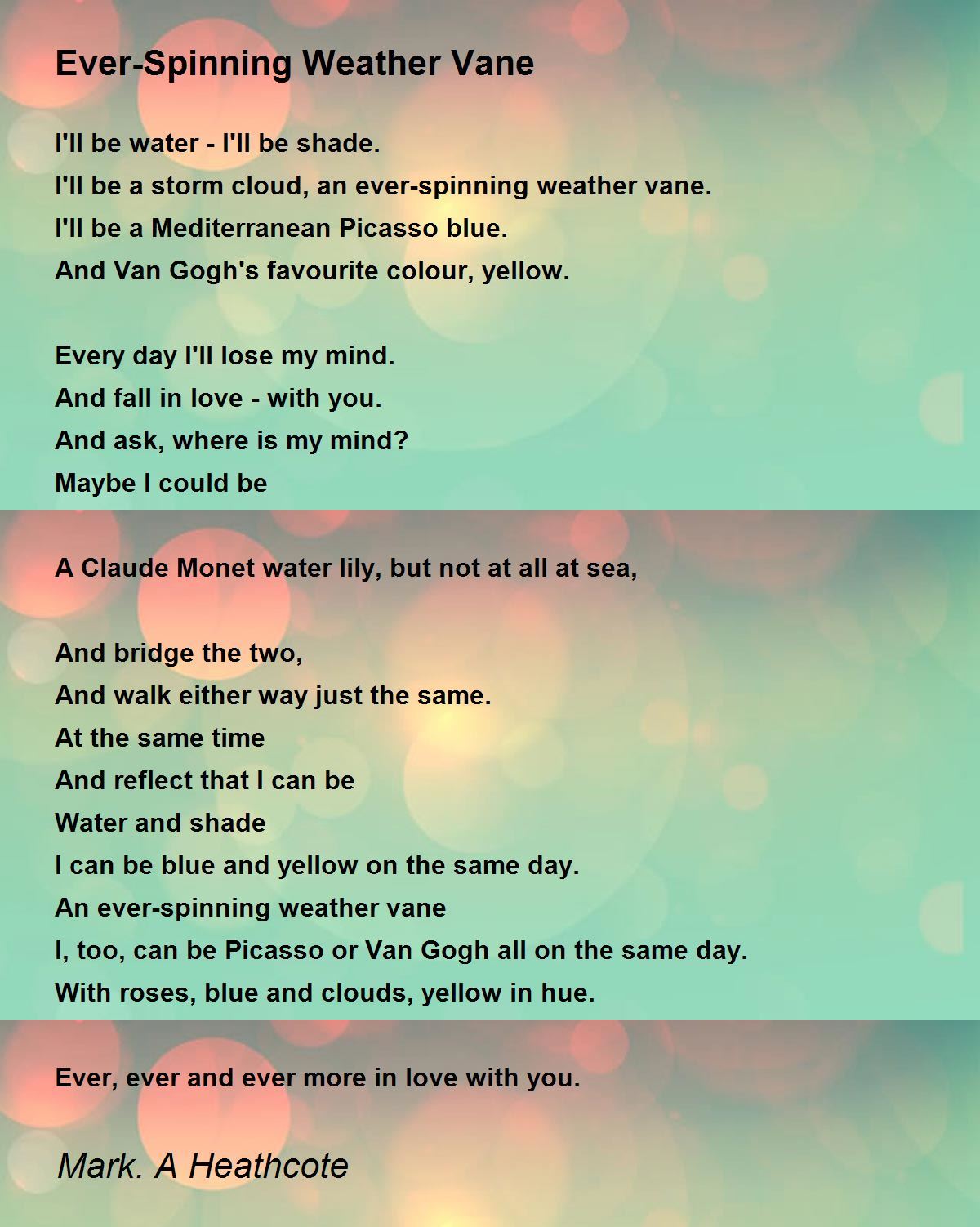 I'll be a storm cloud, an ever-spinning weather vane.