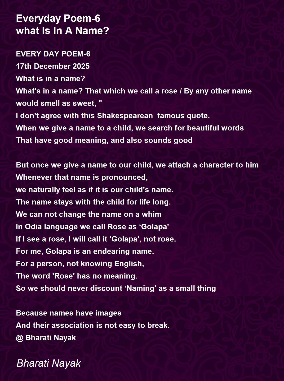 What's in a name? That which we call a rose / By any other name would smell as sweet, "