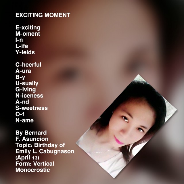 Topic: Birthday of Emily L. Cabugnason (April 13)