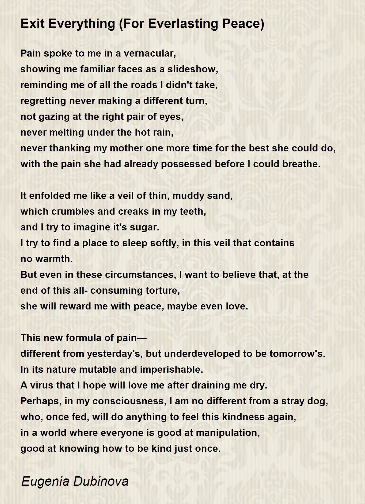 I try to find a place to sleep softly, in this veil that contains no warmth.
