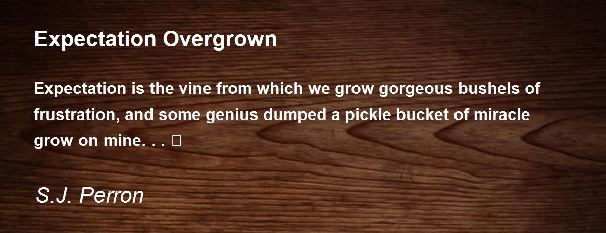 Expectation is the vine from which we grow gorgeous bushels of frustration, and some genius dumped a pickle bucket of miracle grow on mine...🍇