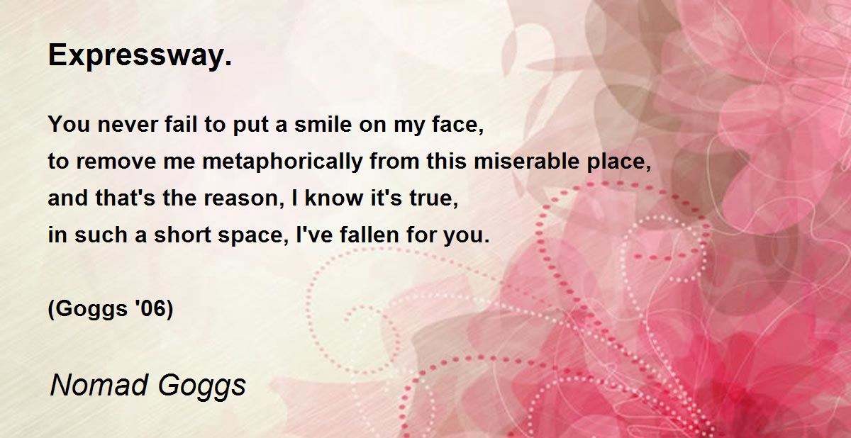 Way ta express love fer one u like on the expressway of loving's most busy highway in life. Yew payde grate atTention tew luv's detales. God bless all poets-MJG.