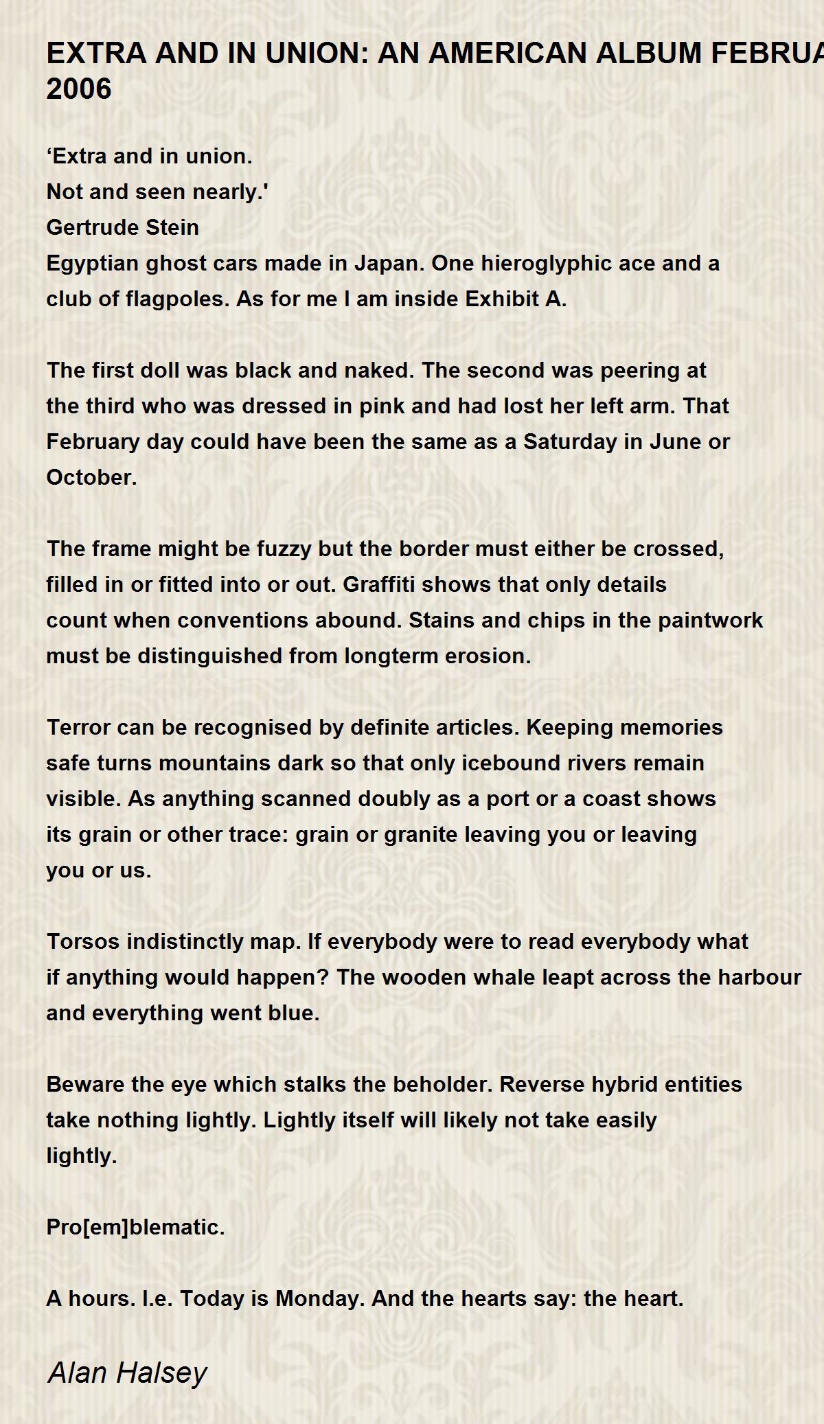Terror can be recognised by definite articles. Keeping memories safe turns mountains dark so that only icebound rivers remain visible. As anything scanned doubly as a port or a coast shows its grain or other trace: grain or granite leaving you or leaving you or us.