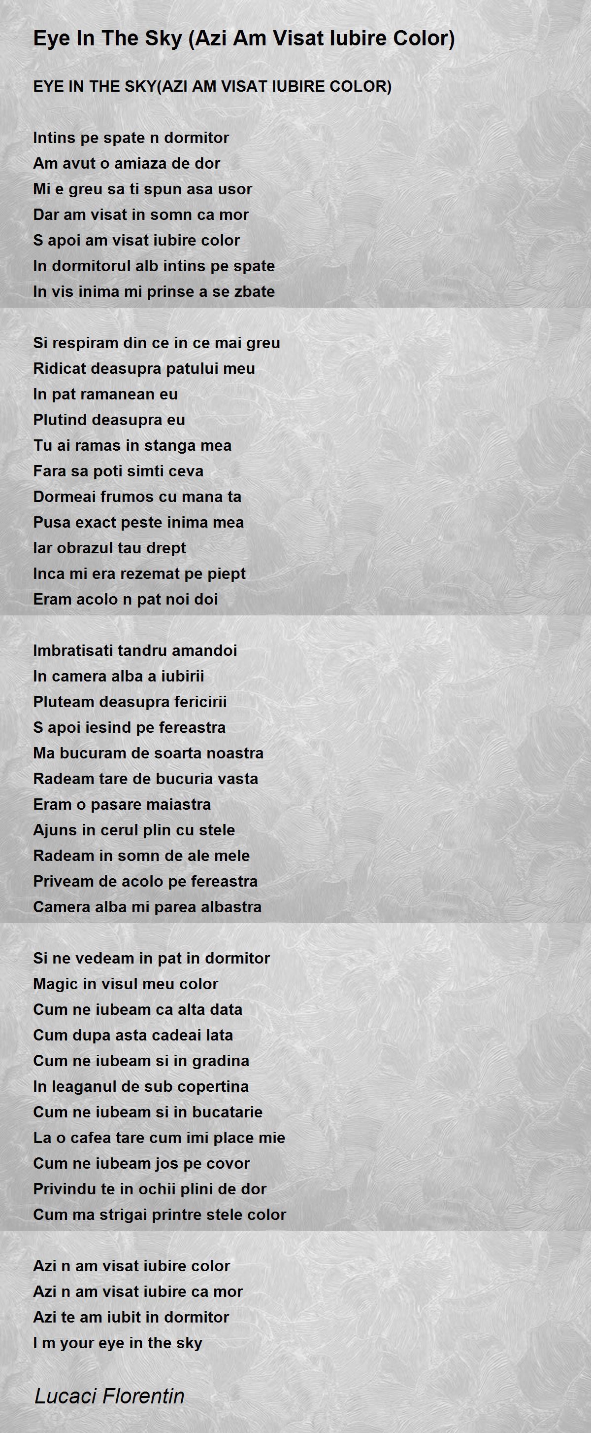 EYE IN THE SKY(AZI AM VISAT IUBIRE COLOR)