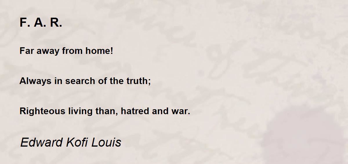 Far away from home! Always in search of the truth; Righteous living than, hatred and war.