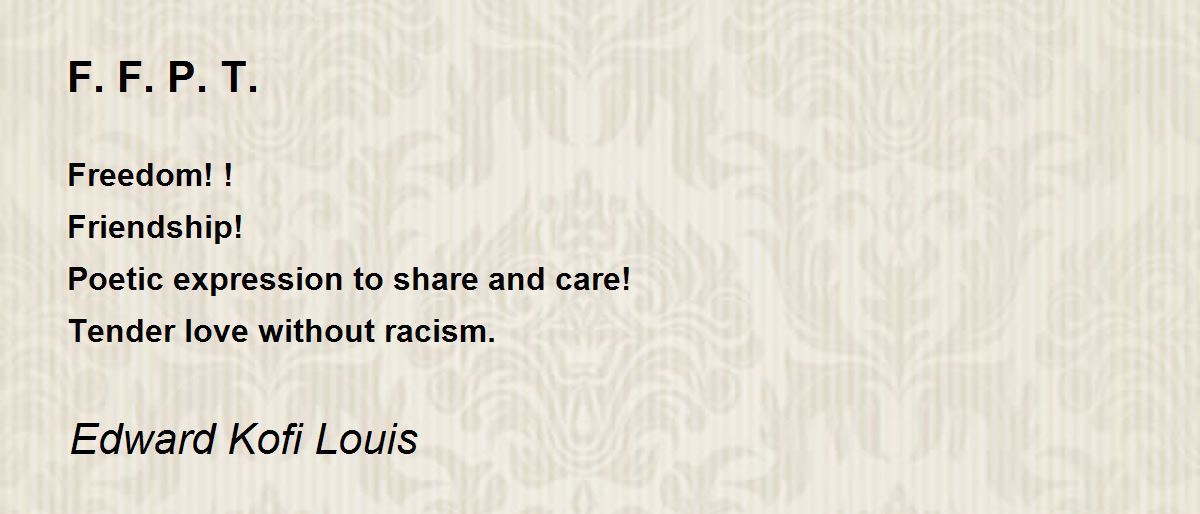 Freedom! ! Friendship! Poetic expression to share and care! Tender love without racism.