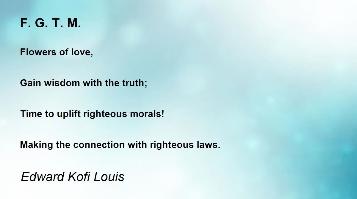 Flowers of love, Gain wisdom with the truth; Time to uplift righteous morals! Making the connection with righteous laws.