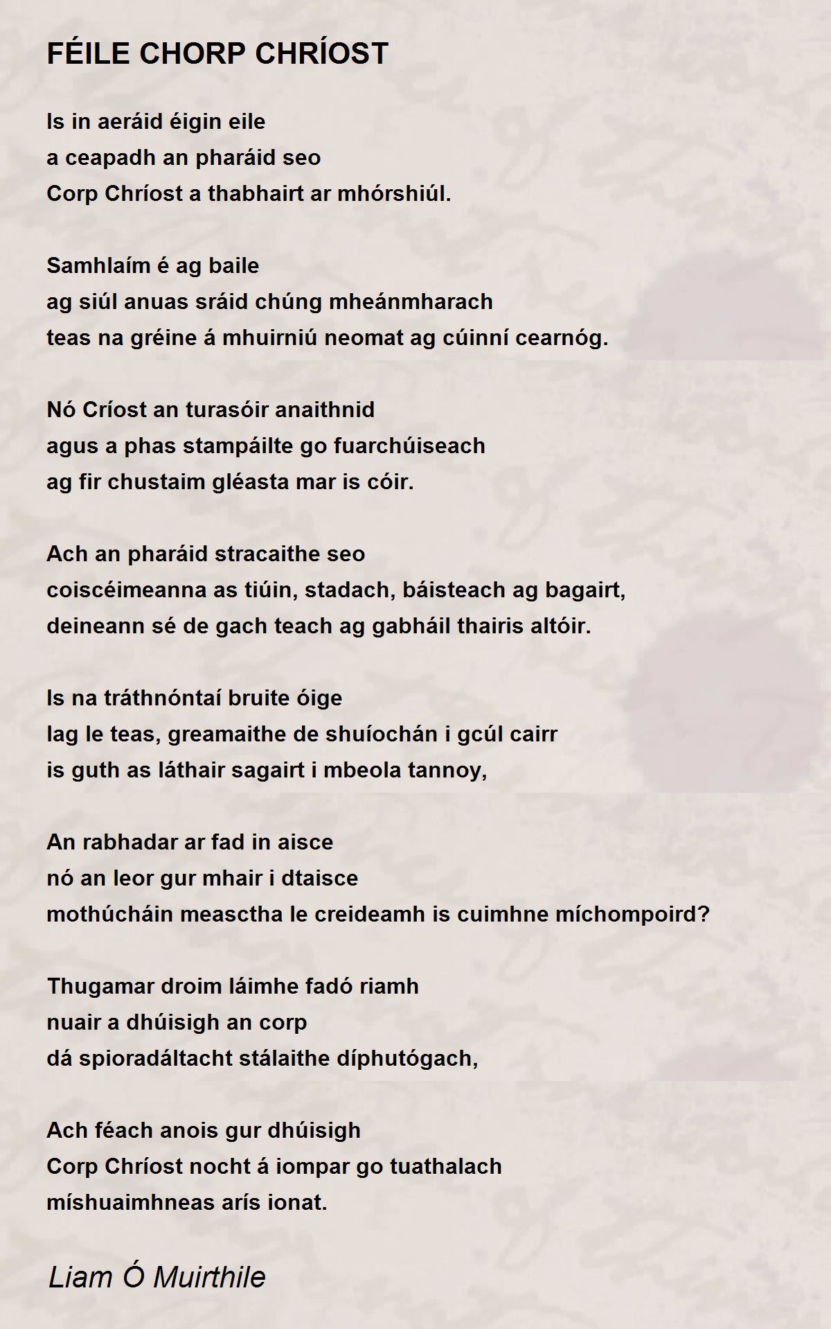 Corp Chríost nocht á iompar go tuathalach