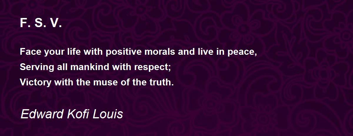 Face your life with positive morals and live in peace, Serving all mankind with respect; Victory with the muse of the truth.