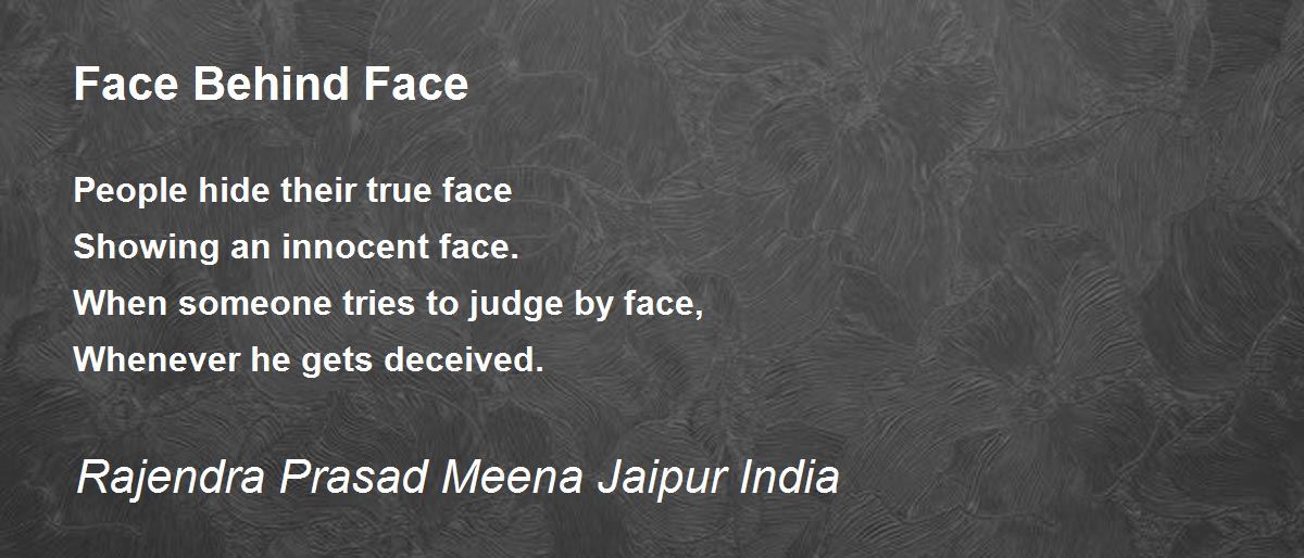 People hide their true face Showing an innocent face. When someone tries to judge by face, Whenever he gets deceived.
