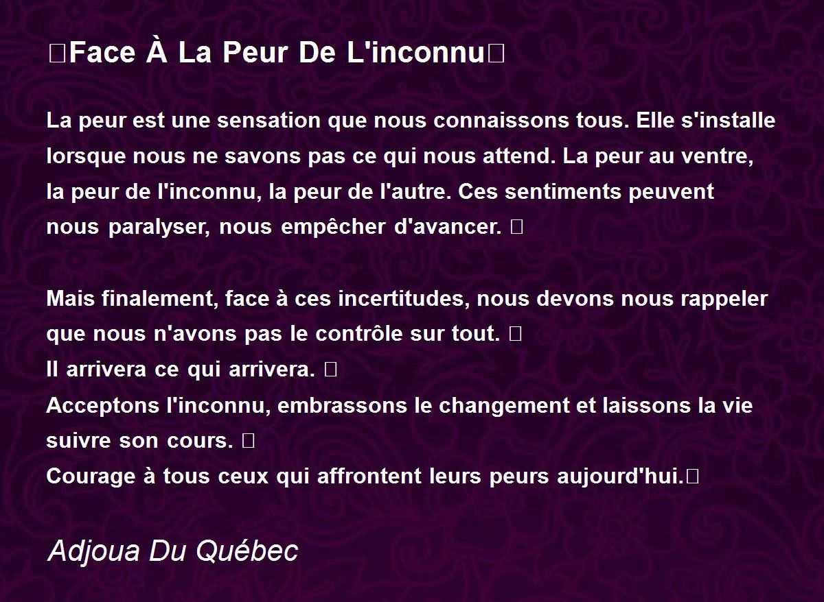 La peur est une sensation que nous connaissons tous. Elle s'installe lorsque nous ne savons pas ce qui nous attend. La peur au ventre, la peur de l'inconnu, la peur de l'autre. Ces sentiments peuvent nous paralyser, nous empêcher d'avancer.😔