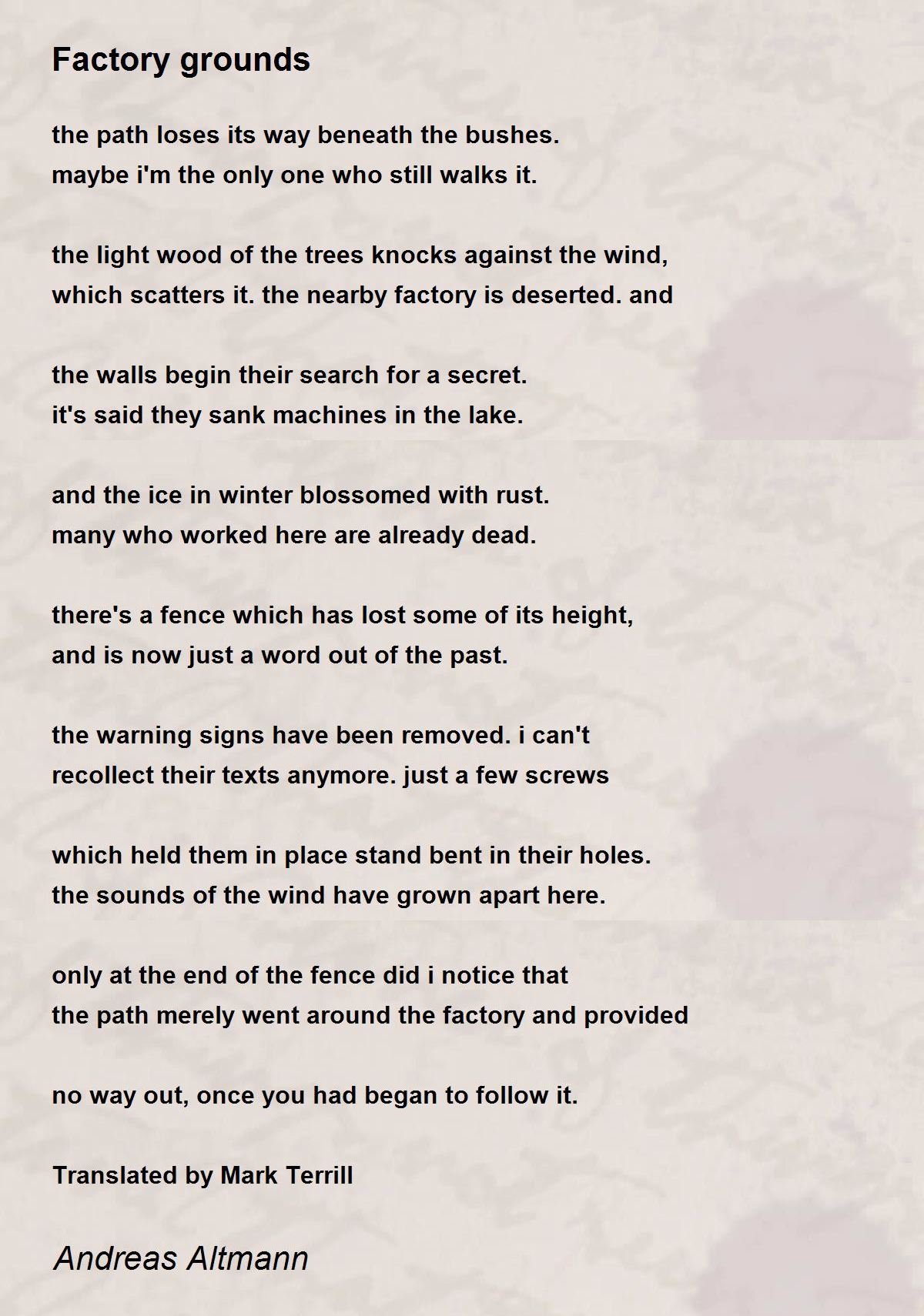 which scatters it. the nearby factory is deserted. and