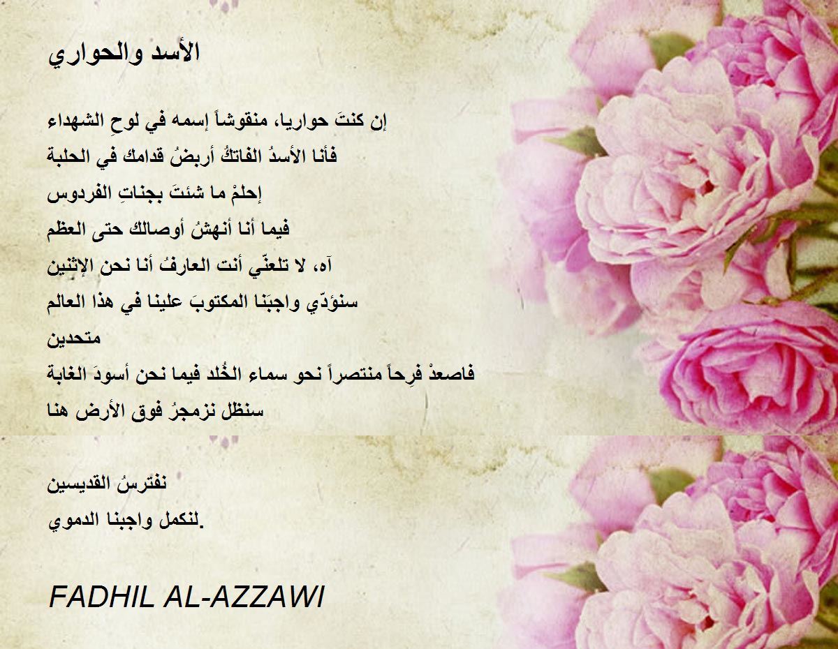 فأنا الأسدُ الفاتكُ أربضُ قدامك في الحلبة