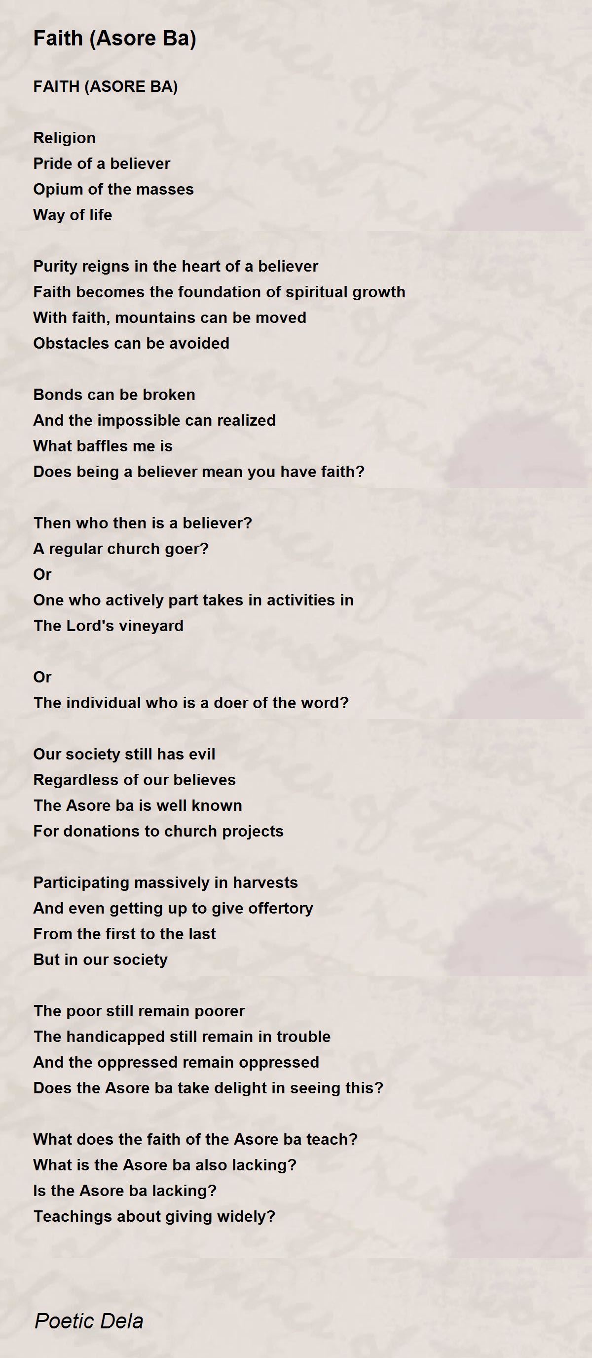 Faith is acting on what one believes in, and a believer is one who has faith. Beautiful piece of poetry, well articulated and nicely penned with spiritual insight. Thanks for sharing Kpatakpa.