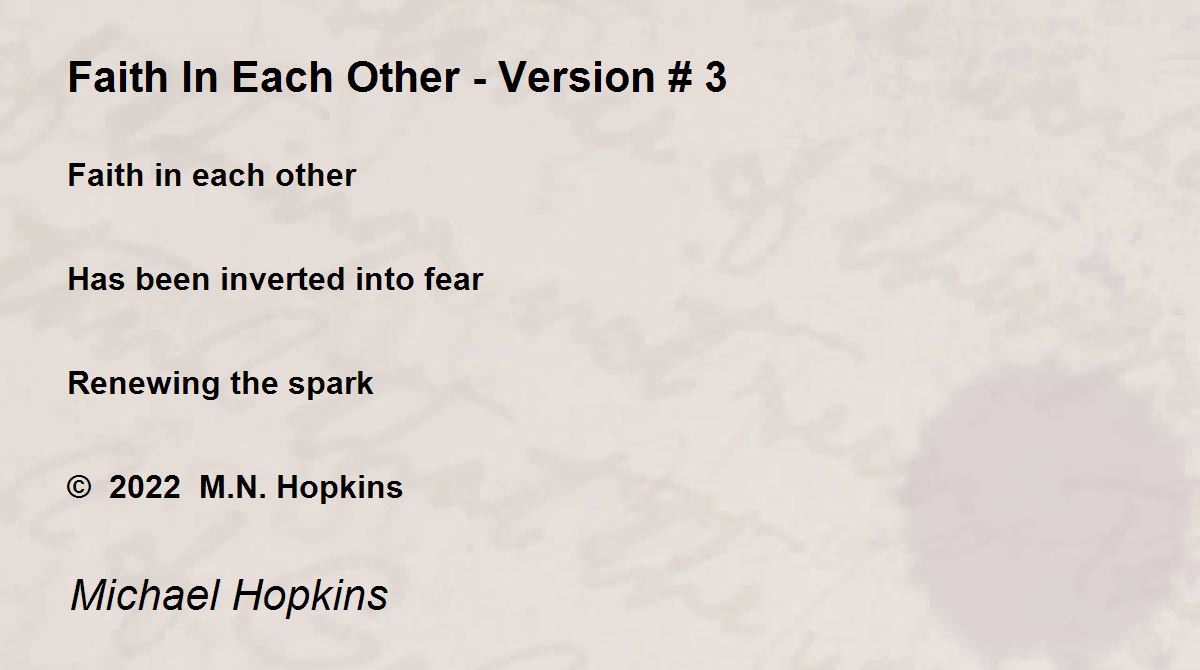 Faith In Each Other - Version # 3 Poem by Michael Hopkins