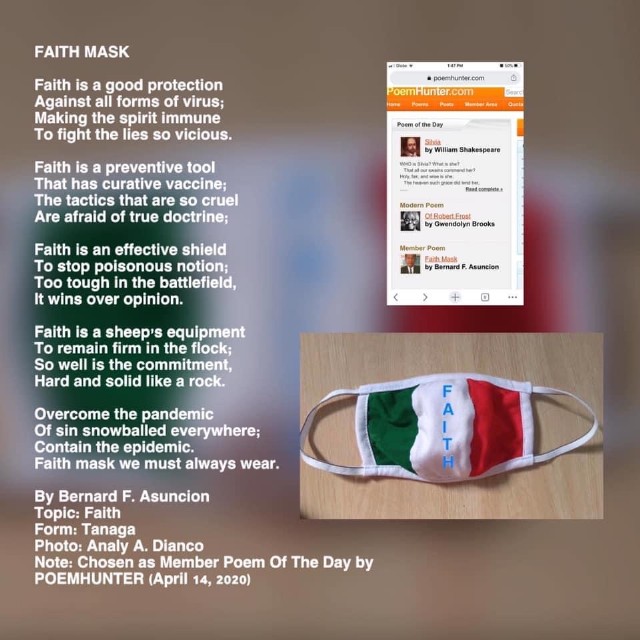 Yes indeed, faith moves mountains, what is Corona? Yet, before faith may help, help thyself by wearing the mask, the mask of faith with all the faith, lovely Tanaga.