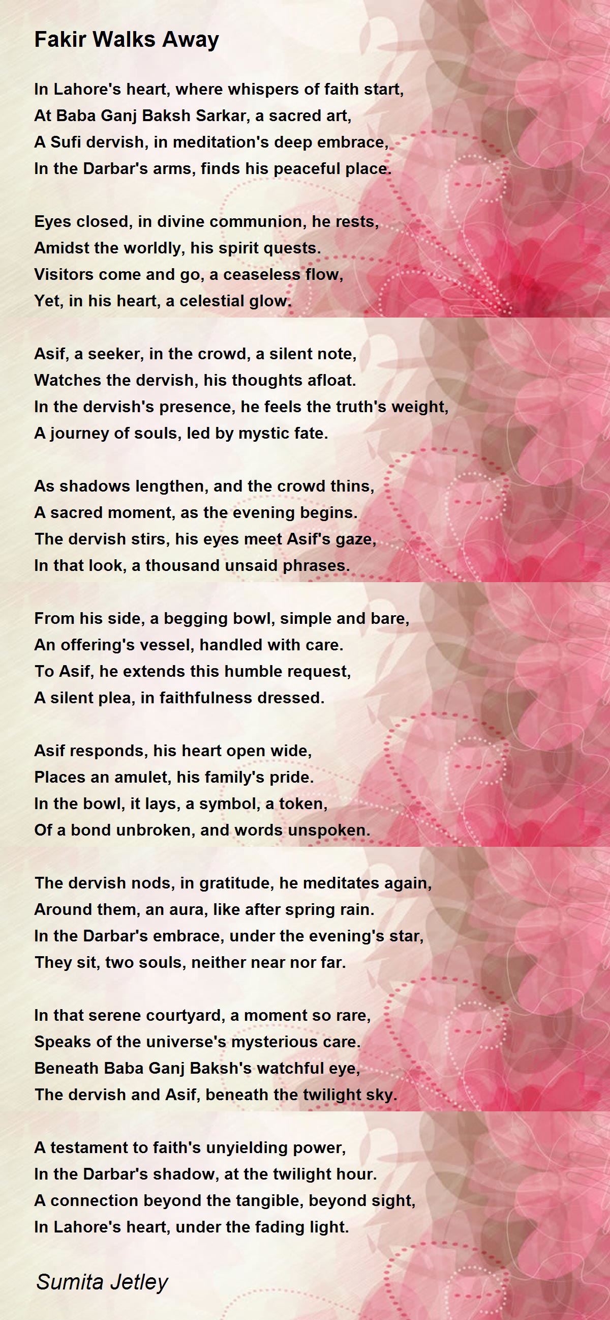 The dervish nods, in gratitude, he meditates again,