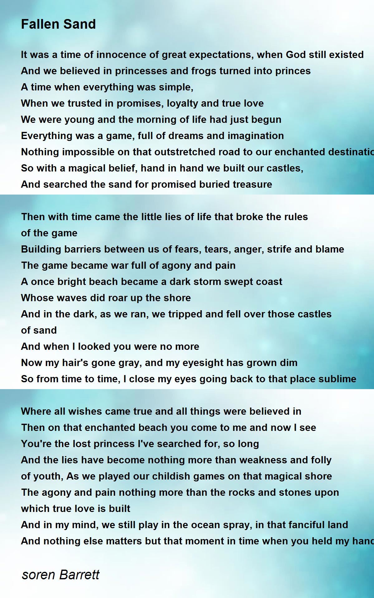 And in the dark, as we ran, we tripped and fell over those castles of sand