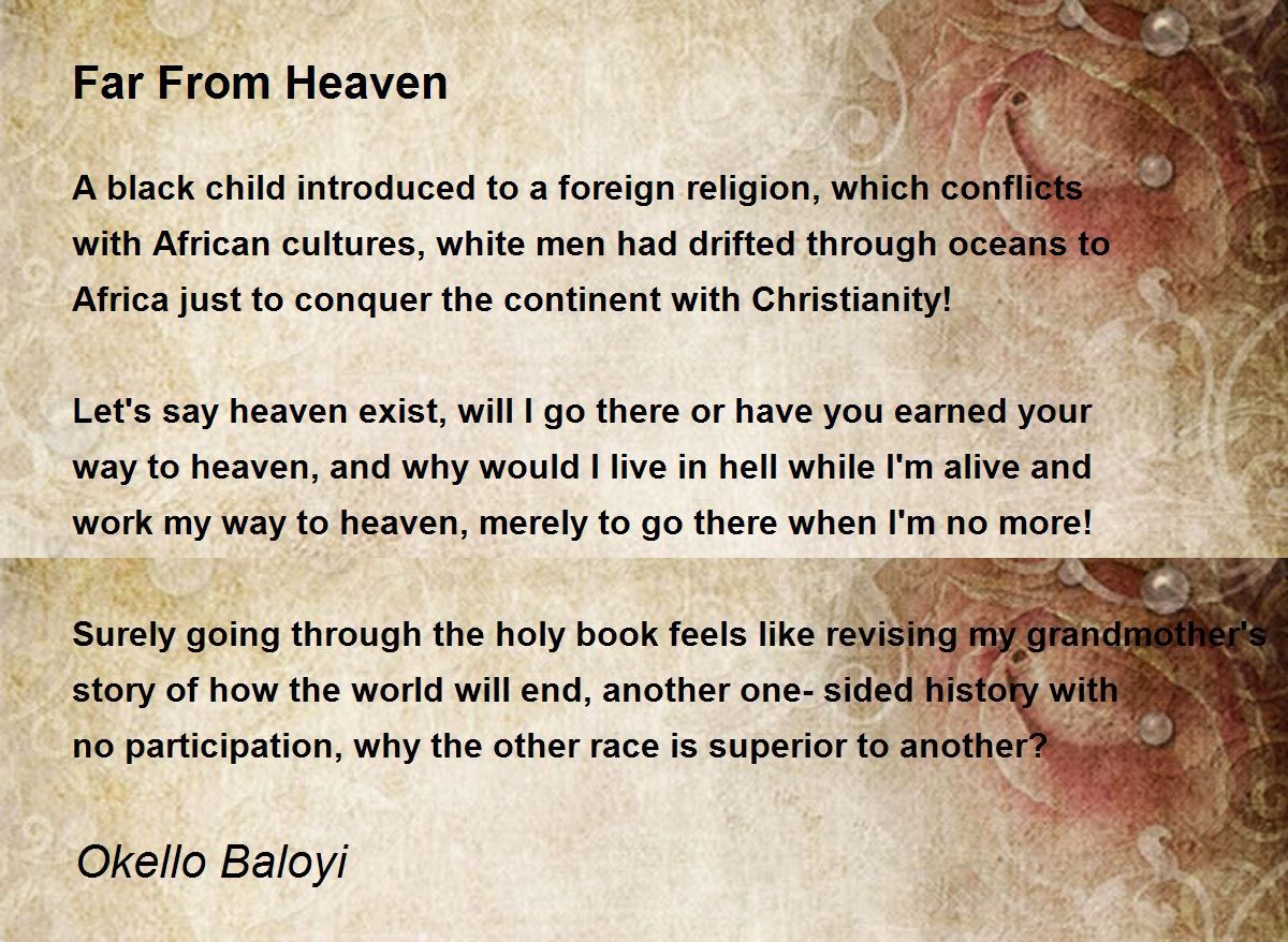 A black child introduced to a foreign religion, which conflicts with African cultures, white men had drifted through oceans to Africa just to conquer the continent with Christianity!