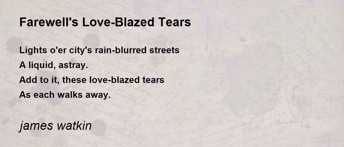 Lights o'er city's rain-blurred streetsA liquid, astray.Add to it, these love-blazed tearsAs each walks away.