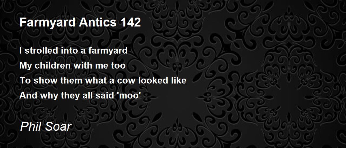 I strolled into a farmyard My children with me too To show them what a cow looked like And why they all said 'moo'