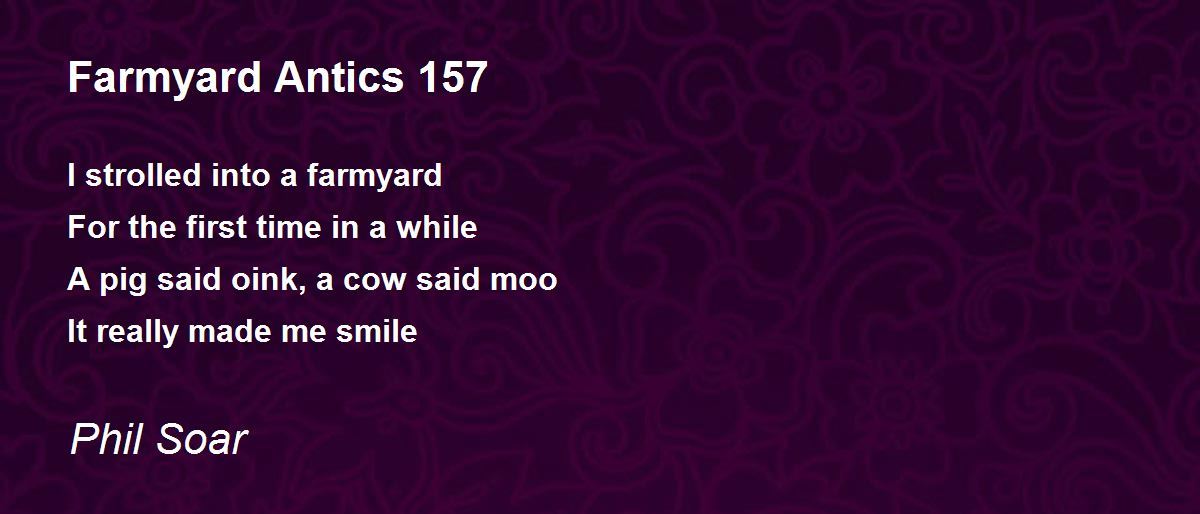 I strolled into a farmyard For the first time in a while A pig said oink, a cow said moo It really made me smile