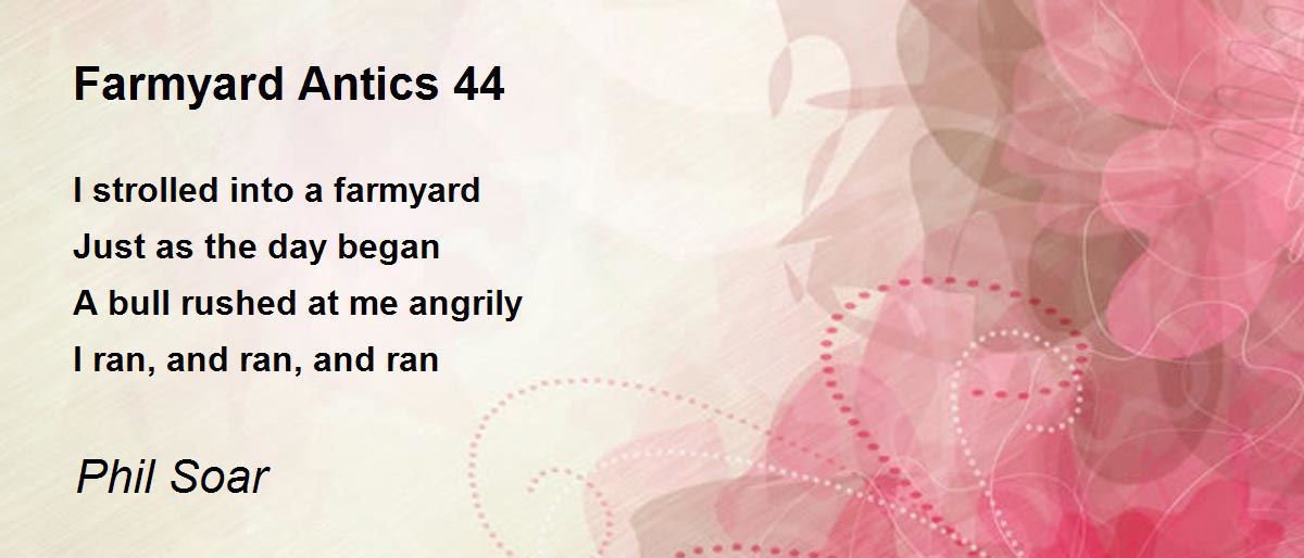 I strolled into a farmyard Just as the day began A bull rushed at me angrily I ran, and ran, and ran