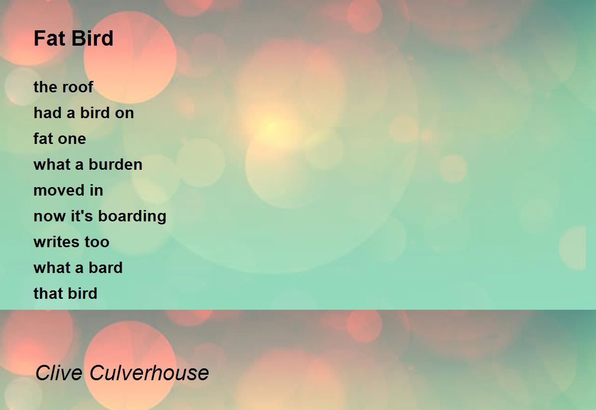 I put this poem on PoetrySoup, here's a comment 'I had to chuckle a bit after reading your poem. The bird moved in and writes...what a bard that bird! Perfect.'