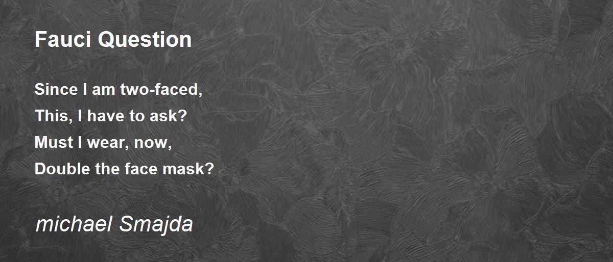 Since I am two-faced, This, I have to ask? Must I wear, now, Double the face mask?